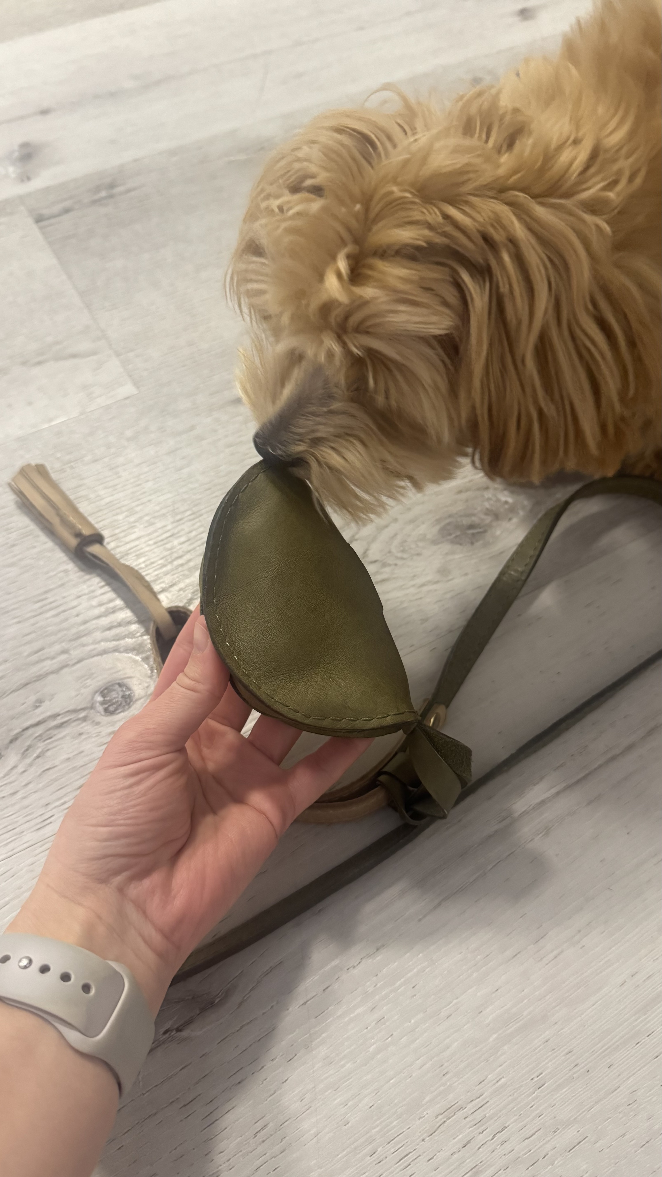 Сумочка выполнена из натуральной кожи. Ее можно подобрать в тон поводочка, а можно соригинальничать и выбрать другой цвет. Мы проверяли - выходит круто! Кстати, цвета можно комбинировать.